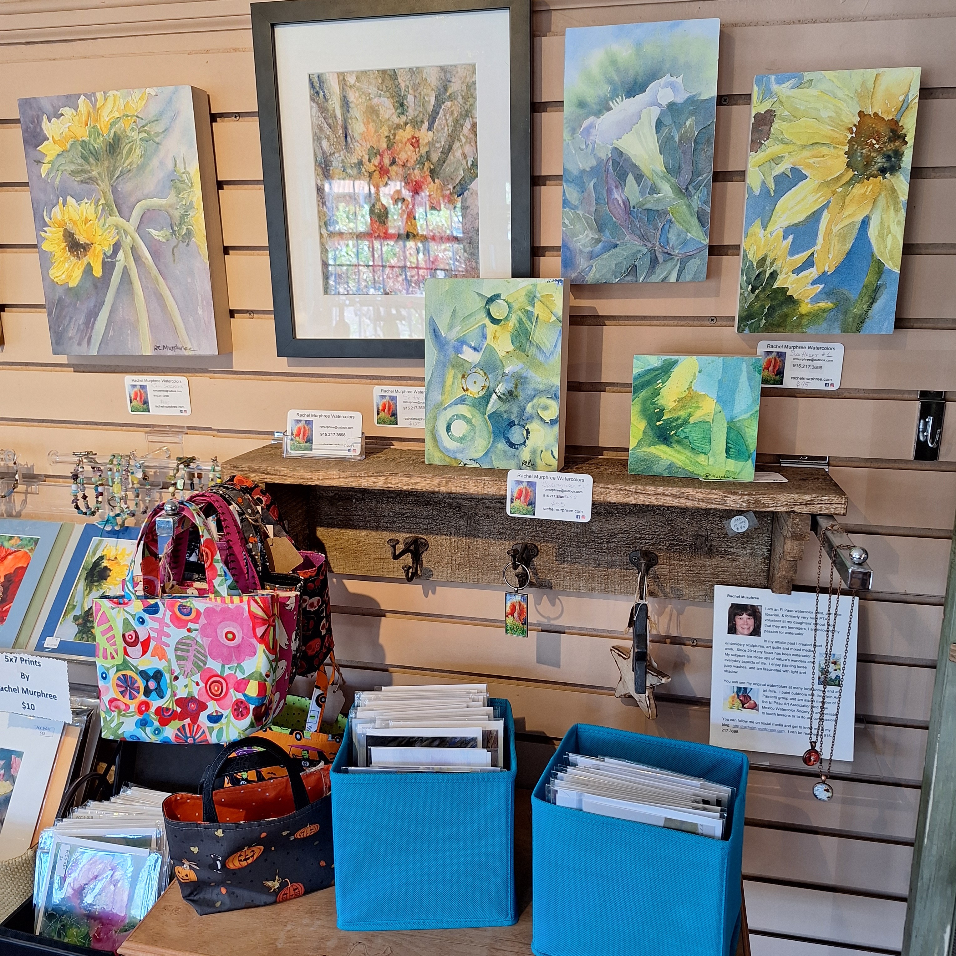 Patricia's Creative Corner is a curated collection of artist's works. Handmade pipe fitting lamps with Edison bulbs, charcoal drawings of famous musical artists, fired clay pottery, inventive woodworks, cute sewn items and more. You just have to look at each display. There are vignettes of cowboy life, felt gnomes, handmade soaps, blown glass humming birds, little clay monk ornaments, as well as angels of all shapes and sizes. Several artists rotate their stock so if you keep coming in to look, there will be new items showing up on an artist's whim.